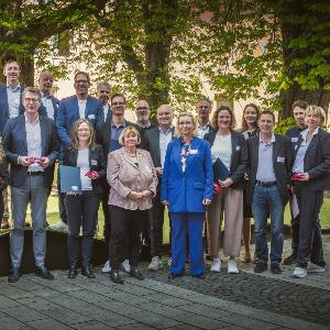 Minister of Science Blume with award-winning faculty members (fourth from the right: Professor Olivia Merkel).) | © Axel Koenig - StMWK
